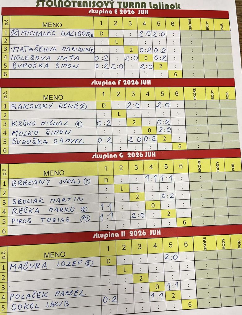 Súťažilo sa v niekoľkých kategóriách a počas celého dňa nechýbali vyrovnané duely, dlhé výmeny ani dramatické koncovky. Diváci mohli sledovať zápasy skúsených hráčov, stolnotenisových nadšencov, ale aj mladších talentov, ktorí ukázali veľký potenciál do budúcnosti.